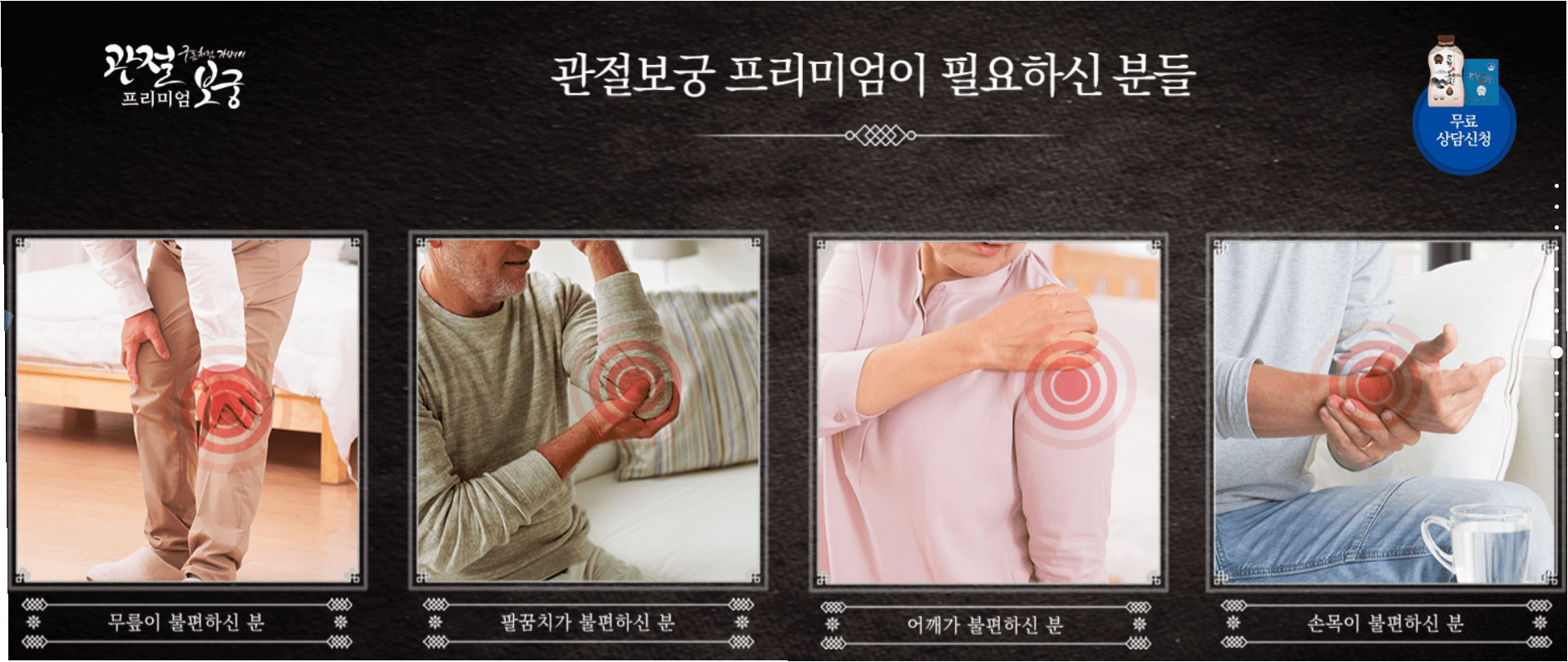 관절 보궁은 기능성 식품이기 때문에 섭취 방법 성분상 어쩔 수 없이 생기는 알레르기반응등(갑각류 알레르기)때문에 상담 사이트를 별도로 운영하고 있다. 갸격은 회사 정책상 공개를 원하고 있지 않고 불법 과장 광고등을 규제 하고 있으니 온라인상의 반값 할인등 속지 마시길 바랍니다.