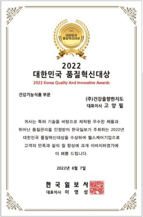 관절보궁 프리미엄이 한국일보가 주최하는 '2022 대한민국 품질혁신대상' 건강기능식품 부문에서 4년 연속 수상했다. 건강식품이 난무하는 요즘 관절이란 단어만 검색해도 수십 개의 먹거나 사용해야 할 용품이 쏟아져 나오는 것을 느낀다. 관절 보궁은 한약 형태의 마시는 ‘보’와 정제형태인 ‘궁’ 두가지로 구성되어 있는 이중기능성 건강기능식품이다. 원료의 최적 함량을 찾아 배합한 제품으로 하루 두 번 보와 궁을 같이 복용할 시 높은 시너지 효과를 기대할 수 있다고 한다.