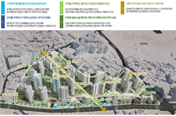 마포구 공덕동 11-24 일대 세부내용 공덕동 11-24 일대는 만리재로와 연결되어 있는 구릉지로 주거환경개선사업이 부분적으로 추진되었으나 실질적인 개선이 이루어지지 않았습니다. 이곳에는 만리재로변 옹벽을 철거하여 폐쇄적인 가로환경을 개선하고 주변에 열린 단지로 조성할 계획입니다. 또한 청파~공덕동 일대의 보행녹지를 확충하고 다양한 활동공간을 조성하는 등 주거환경 개선을 위한 다양한 사업이 계획되었습니다.