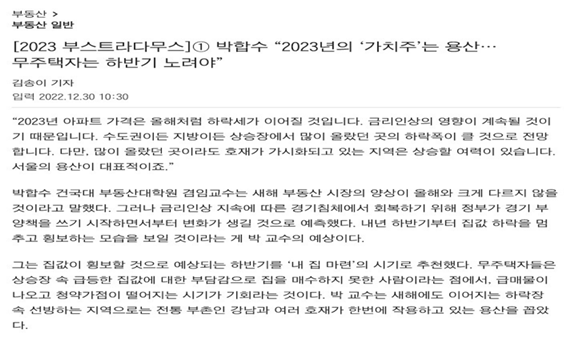 부동산전문가들 투자 1순위 : 서울 용산 2023년 대부분의 부동산전문가들은 주목해야 할 서울지역으로 용산을 1순위로 선정하고 있습니다.