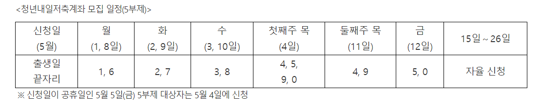 저 소득 청년 자산형성 지원 ‘청년내일저축계좌’ 5월 1일(월)부터 5월 26일(금)까지 신규 가입자를 모집한다. 복지로 홈페이지에서 가능한 온라인 신청은 5월 15일부터 개시 가능 하므로 지원 내용. 신청자격, 신청방법 등을 다시 살펴보자.