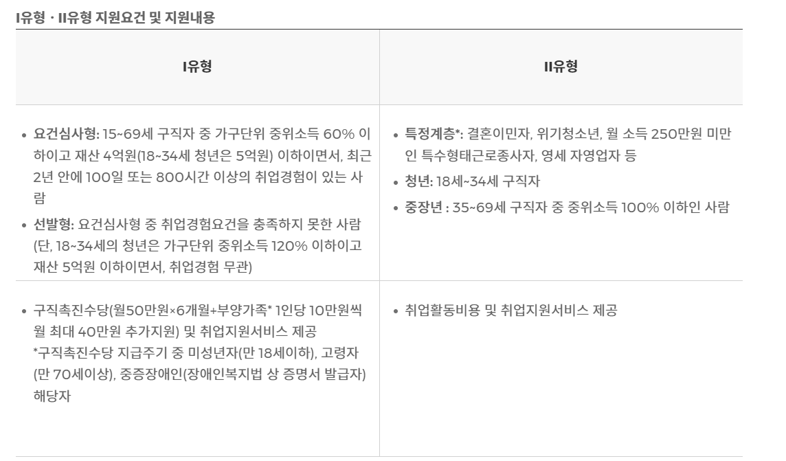 국민 취업 지원금의 경우 소득과 재산에 따라 1유형과 2유형으로 나누어 집니다.