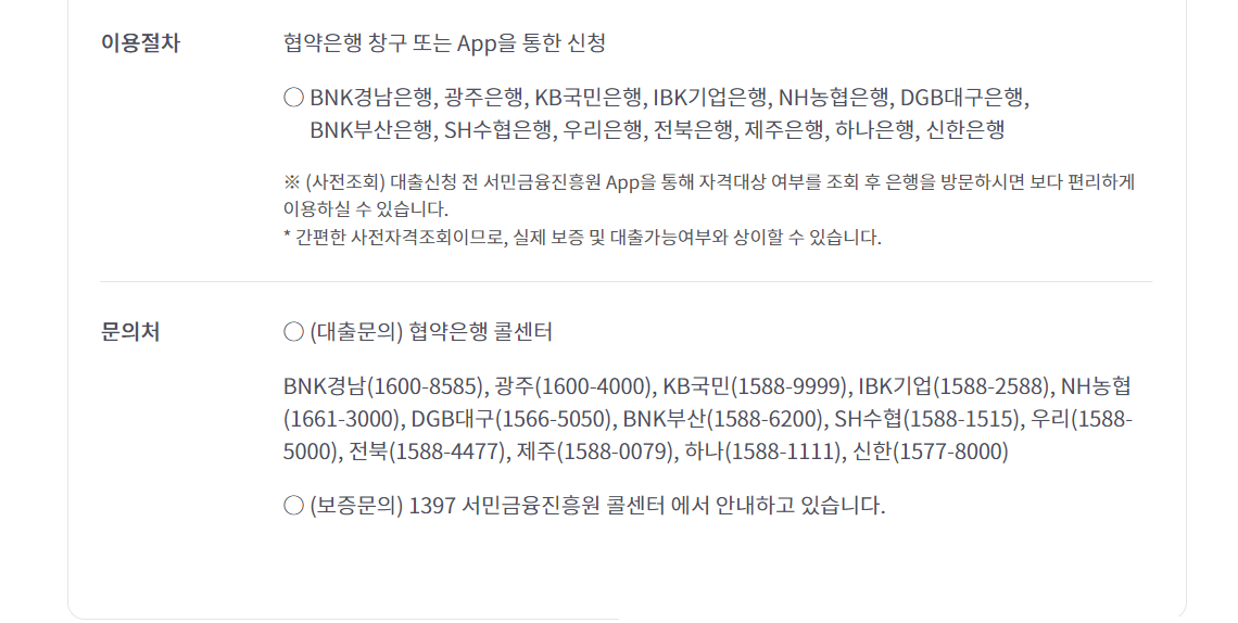 협약된 은행을 이용하여야 하며 서민 진흥원 앱을 통해 사전 조회가 가능하므로 자신의 대출금을 선 조회 후 방문이 가능하다.(아래 큐알코드 클릭)